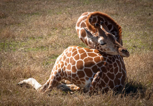 Одне з небагатьох місць, де жираф може поспати в принципі — це зоопарк. У неволі тварини почуваються в безпеці та сплять по 4-5 годин!
