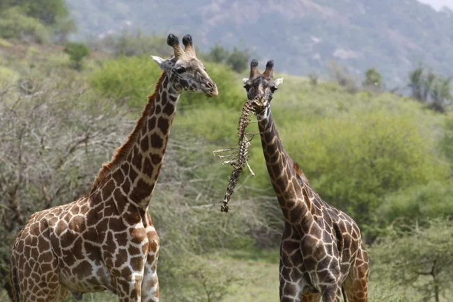 Жирафи живуть не лише на відкритих саванах. Вони з легкістю забираються на схили і подорожують горами і пагорбами, незважаючи на незграбність. Автор: Варвара Дронова.