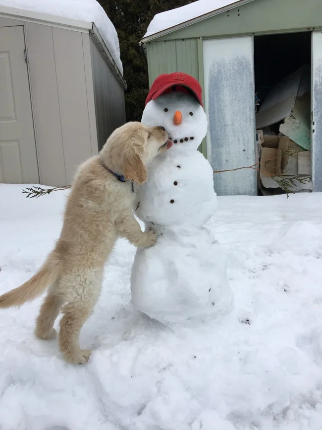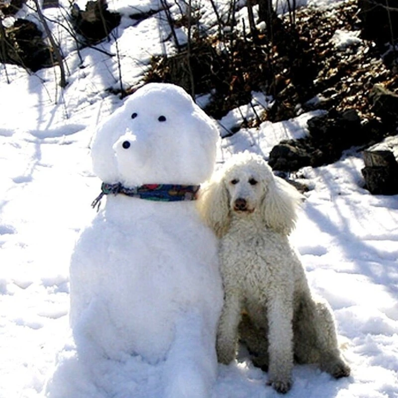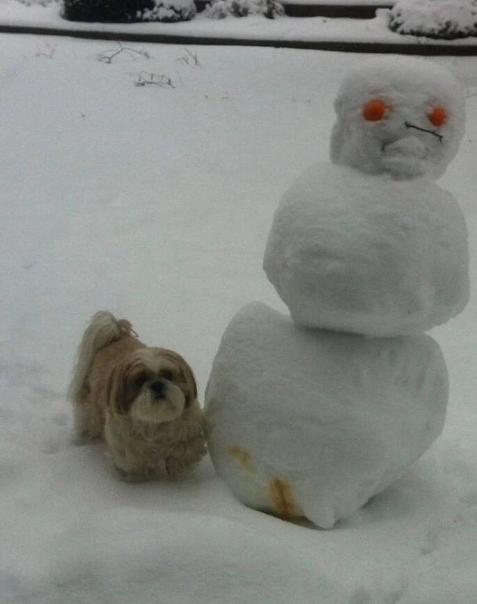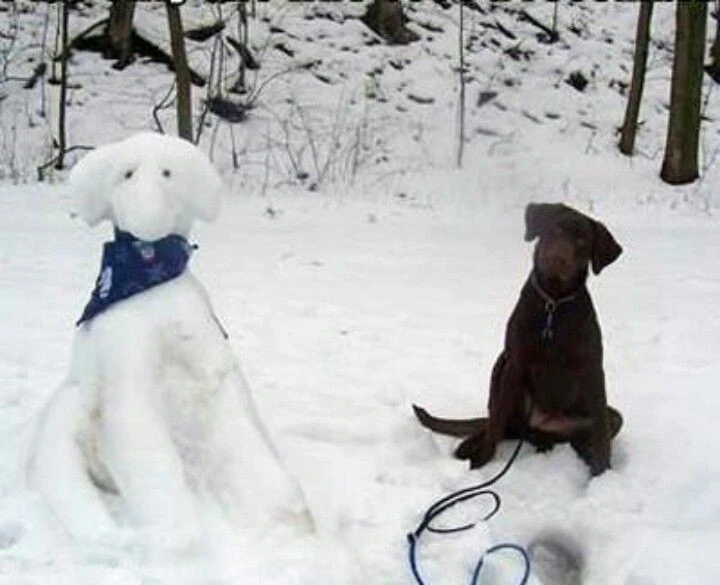 25 прикладів зворушливого знайомства домашніх вихованців з милими сніговиками та власними сніговими копіями (26 фото)
