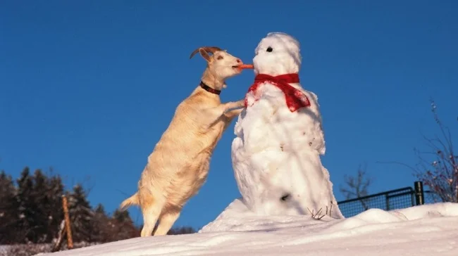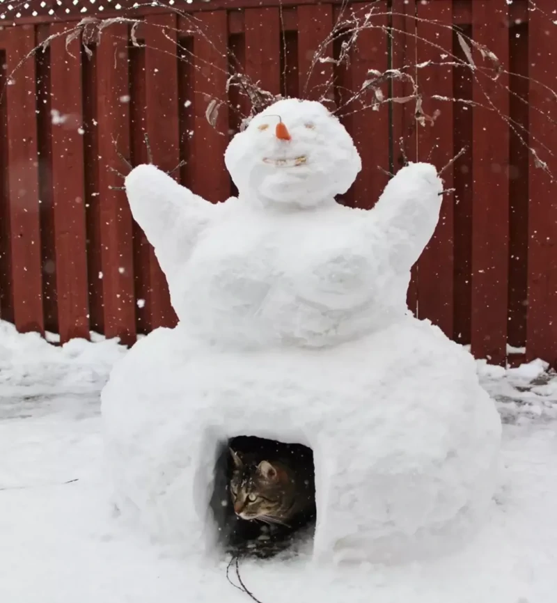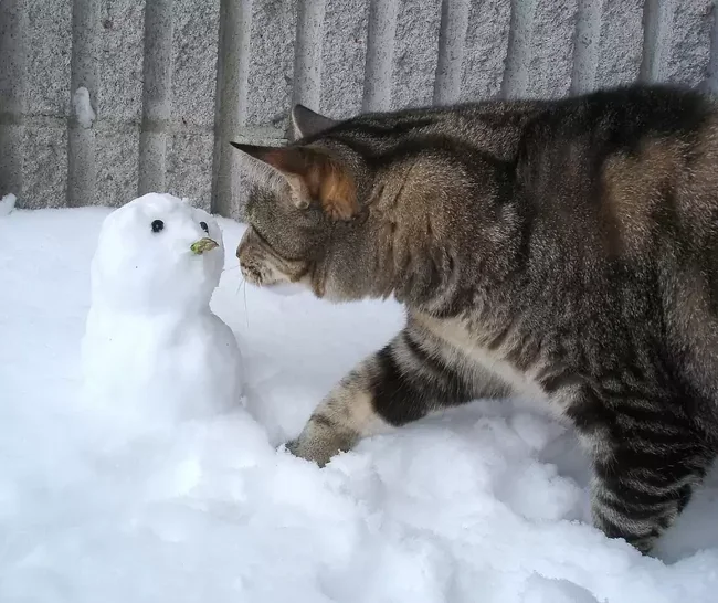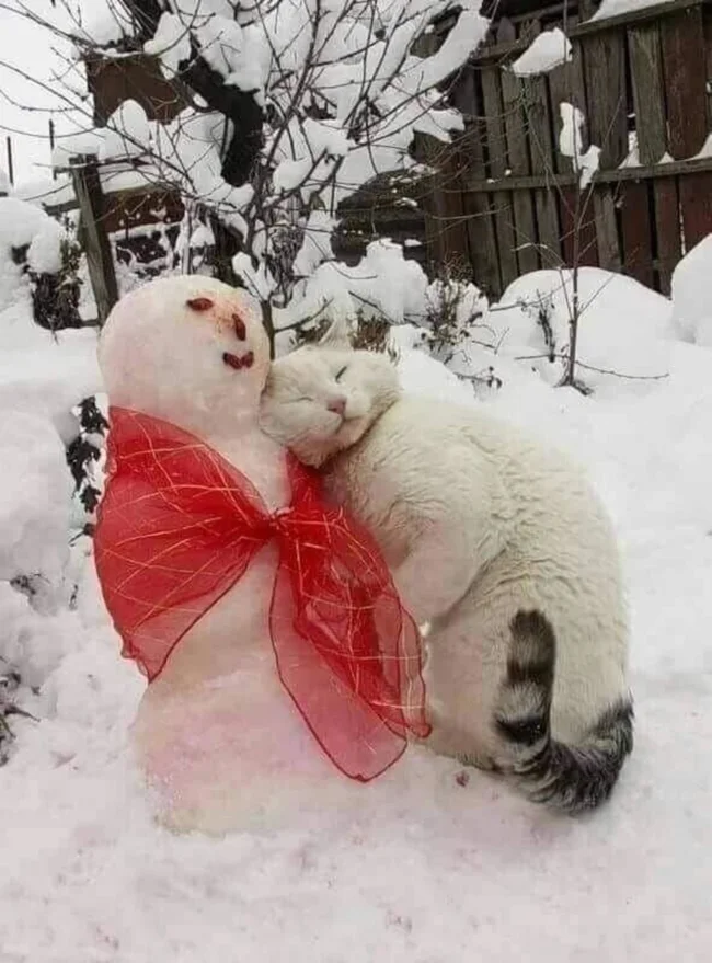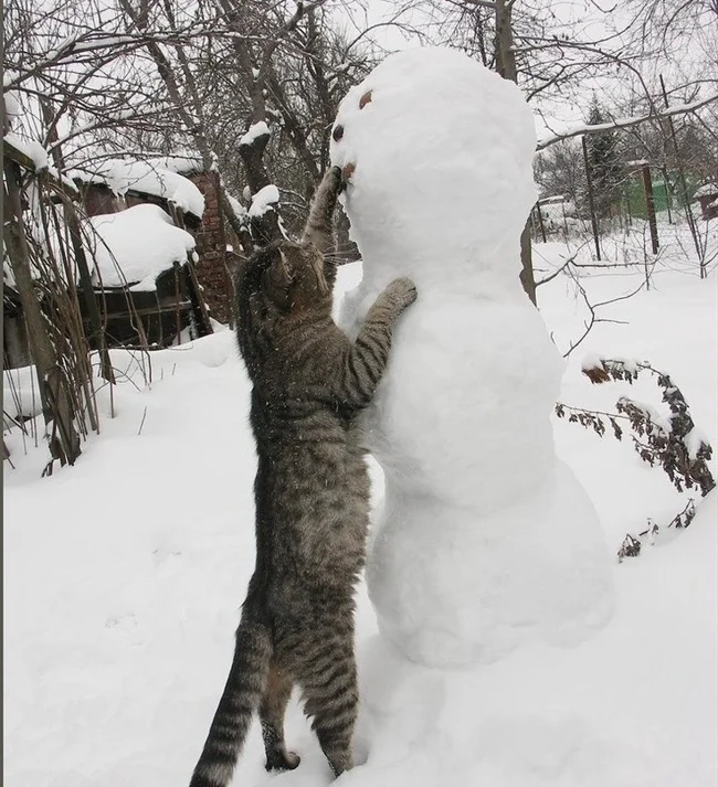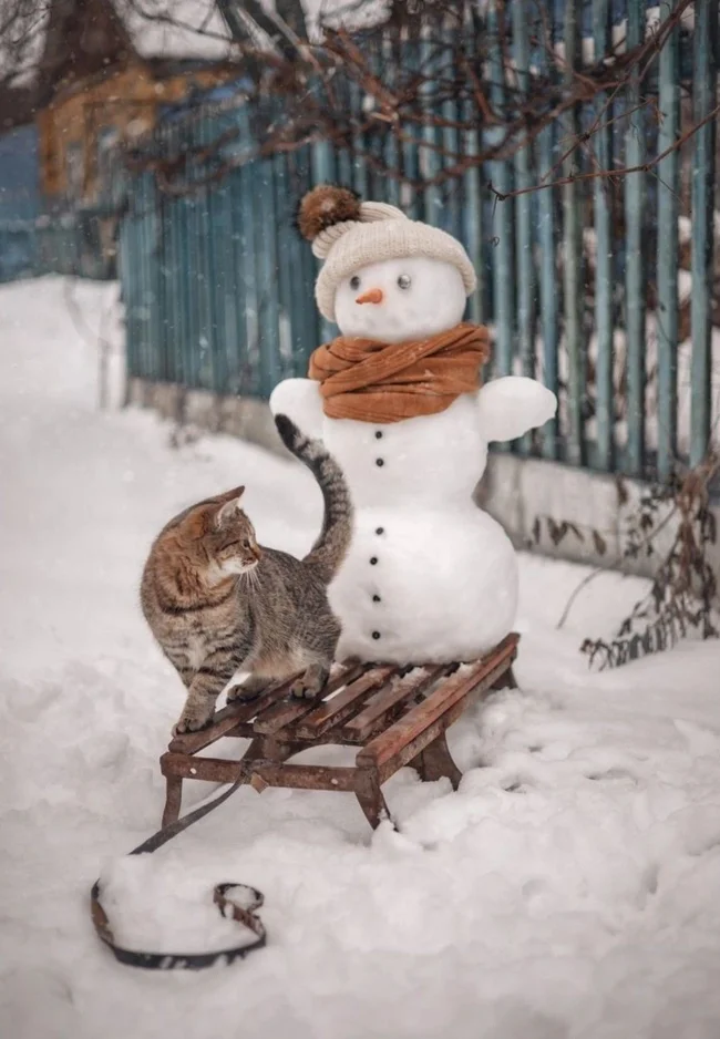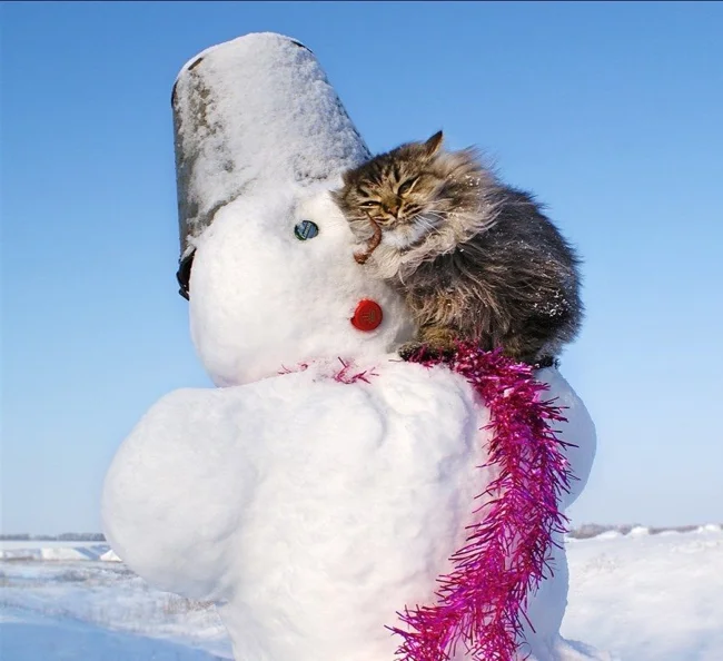 А що, якщо зліпити не просто сніговика, а цілого сніжного котеня чи піселя? Ці фото доводять, що зустріч домашніх улюбленців як зі звичайними сніговими чоловічками, так і зі своїми копіями породжує неймовірно щирі, кумедні та зворушливі моменти. Від цікавого сопіння та ввічливого ігнорування до дружніх обіймів та спроб експропріювати найцінніше (морквину), ці симпатяги демонструють величезний спектр найрізноманітніших емоцій від зустрічі зі своїми сніговими побратимами.
