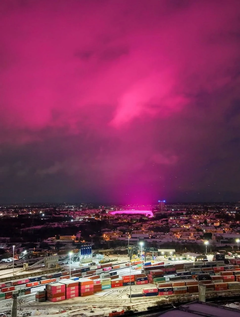 У британському Бірмінгемі небо забарвилося у неоново-рожевий колір (6 фото + 1 відео)