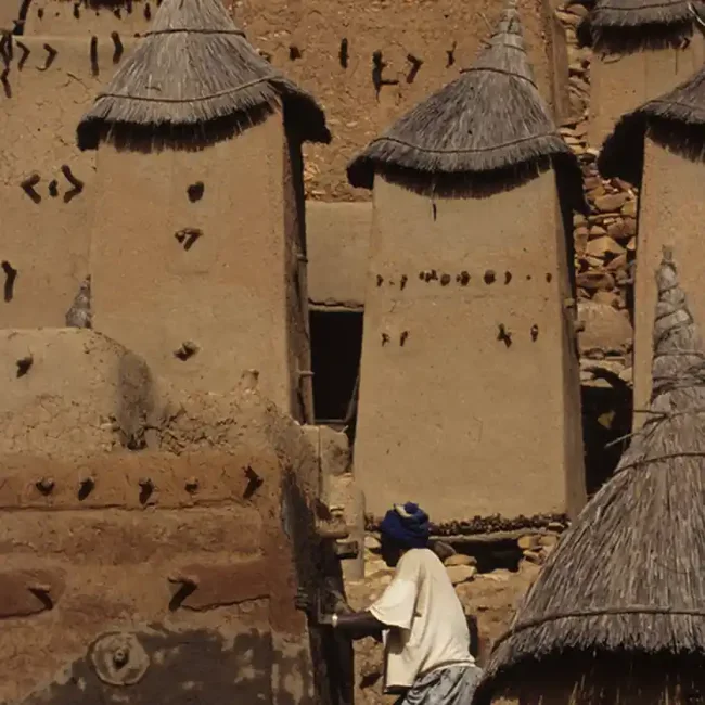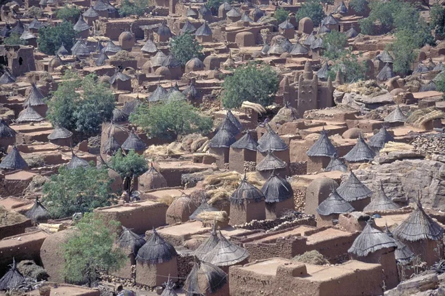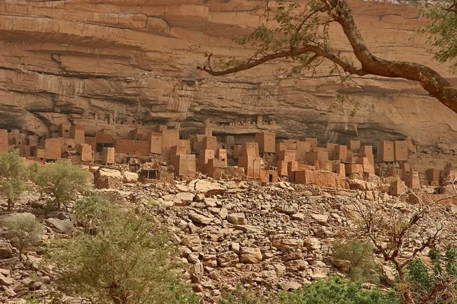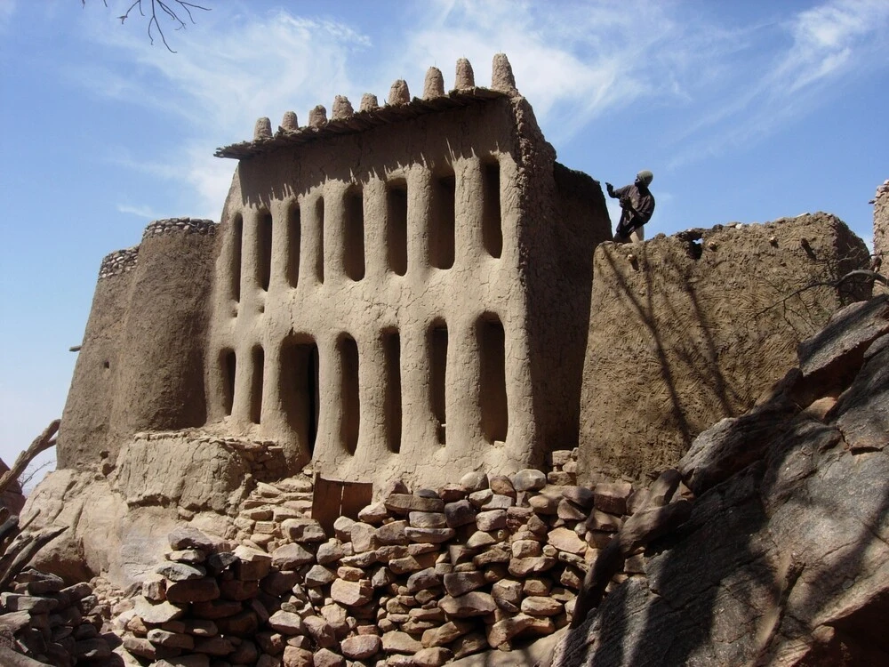 У самому серці Малі, за дев'яносто кілометрів від міста Мопті, з пісків напівпустелі піднімається велична піщана скеля. Це стрімчак Бандіагара, справжнє царство вертикалі, де високе плато зустрічається з безмежною рівниною.