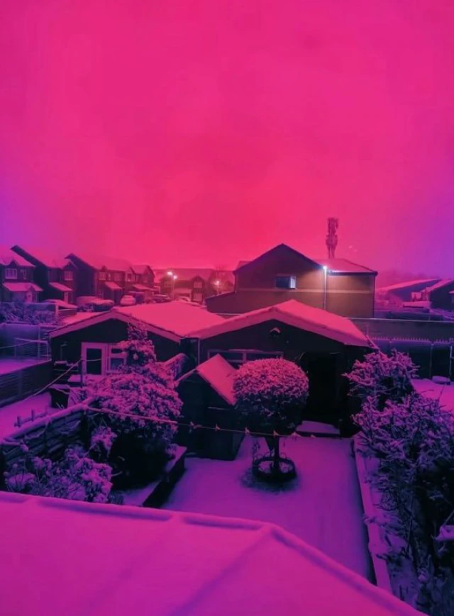 Пізніше представник Британської метеорологічної служби Грем Медж пояснив, що сніг та водяні краплі в повітрі розсіюють світло з синіми хвилями, дозволяючи переважати довшим, помаранчевим та червоним променям. В результаті небо набуло ніжно-рожевого або помаранчевого відтінку.
