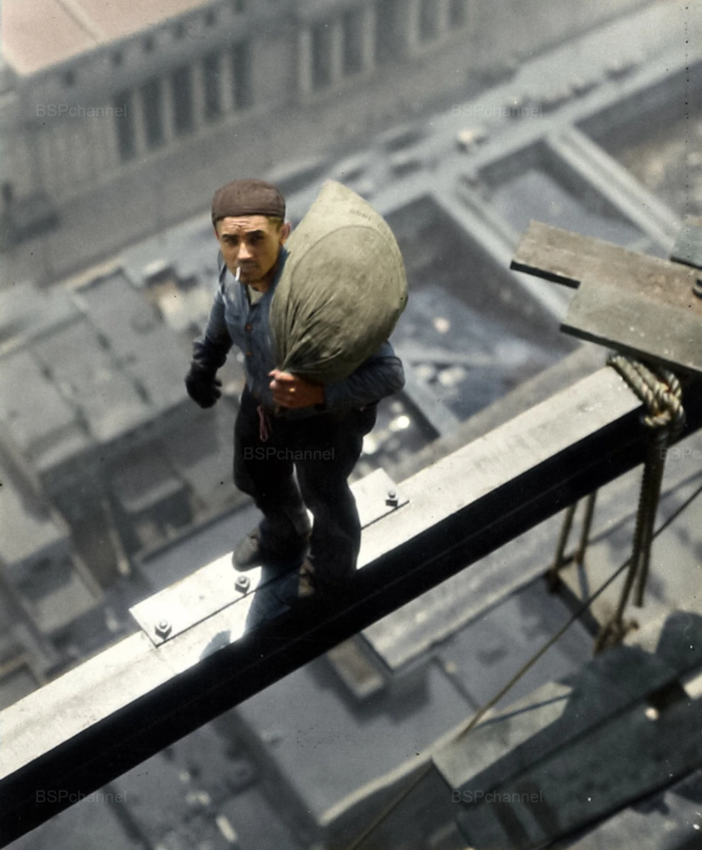 Робочий посеред сталевої балки під час будівництва будівлі на Уолл-стріт. Нью-Йорк, 1930 рік.