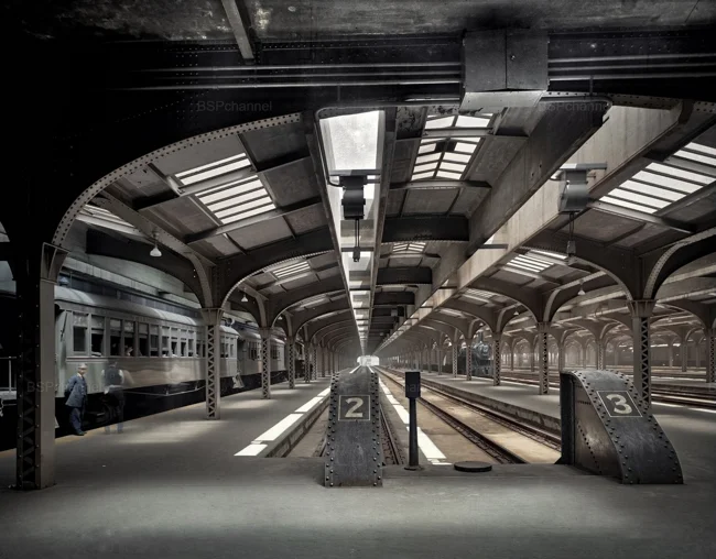 Поїзд на західному залізничному вокзалі. Чикаго, США, 1911 рік.