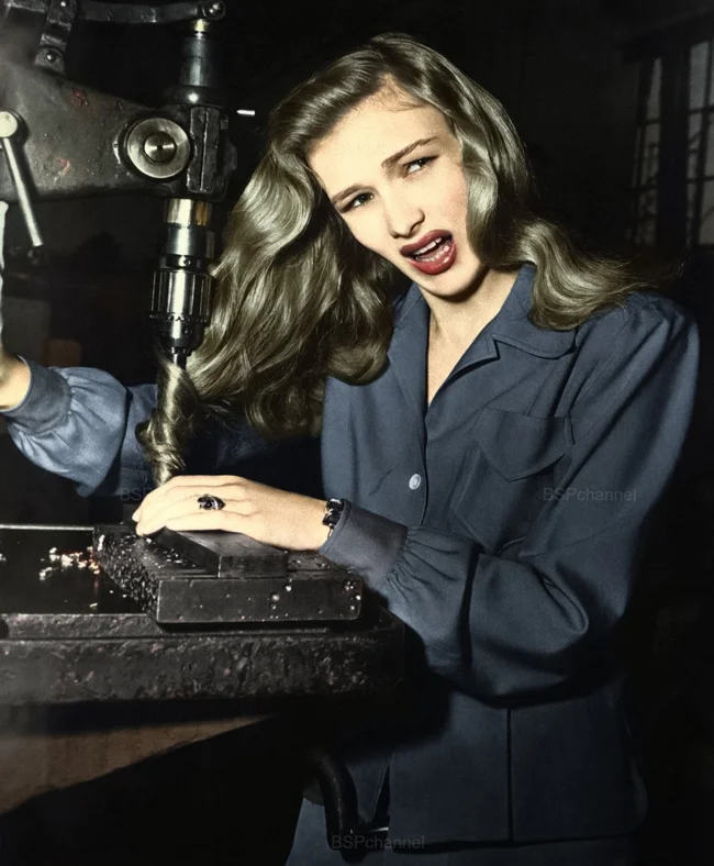 Вероніка Лейк назавжди увійшла в історію кіно не лише як зірка фільмів, а й як ікона стилю, що прославила культову зачіску «peek-a-boo» — з довгими пасмами, що спадають на обличчя і загадково прикривають одне око. Її образ став настільки популярним у 1940-х, що мільйони американок — від підлітків до дорослих жінок — прагнули копіювати її зовнішність, мріючи набути тієї ж магнетичної привабливості. Однак під час Другої світової війни ця мода зіткнулася з суворою реальністю: на військових заводах довге волосся, що падає на обличчя, представляло серйозну небезпеку, його могло затягнути в верстати та обладнання. Тоді американський уряд особисто звернувся до Лейка з проханням змінити імідж. Актриса відгукнулася, вона підняла волосся, показавши обличчя цілком, і взяла участь у національній агітаційній кампанії, яка закликала жінок-робітниць носити практичні та безпечні зачіски.