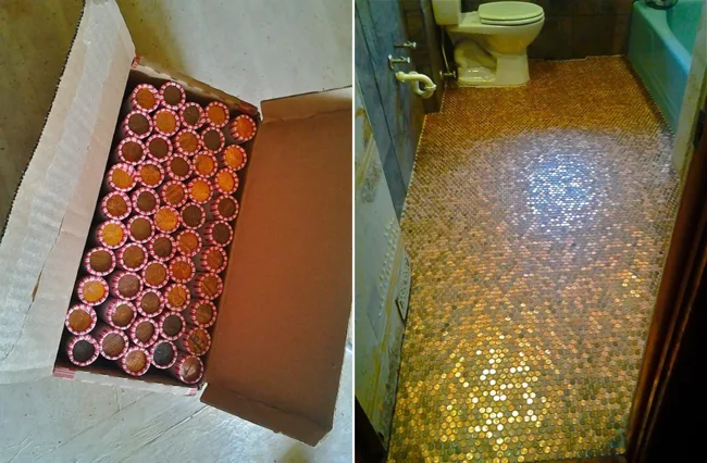 Ілюстратор із Флориди (США) Патрік Жіруар заслужив похвалу за свої копіткі зусилля з облицювання підлоги у ванній кімнаті. Чоловік вирішив виділитися і використав для цього монети на суму 97 доларів.