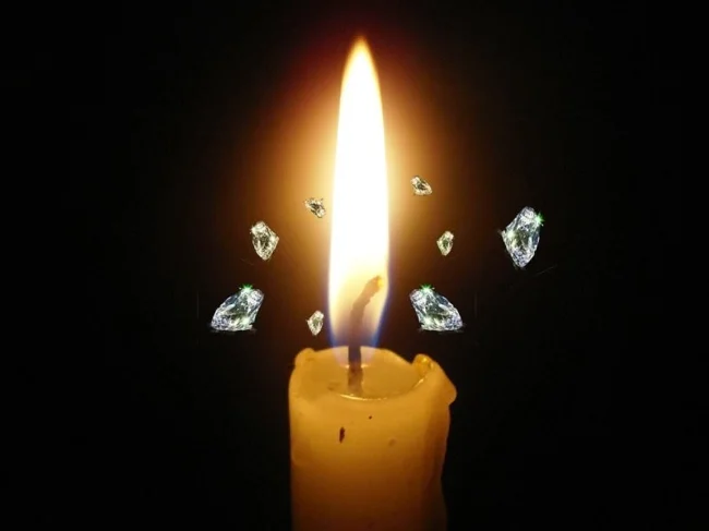 Згідно з дослідженням 2011 року, полум'я свічки щомиті народжує близько 1,5 млн наночастинок алмазу. Побачити ці алмази неможливо, оскільки розмір кожного кристала становить близько 0,003 мікрона. У процесі горіння алмази швидко плавляться, перетворюючись на вуглекислий газ, так що зібрати «свічковий» діамант не вийде.