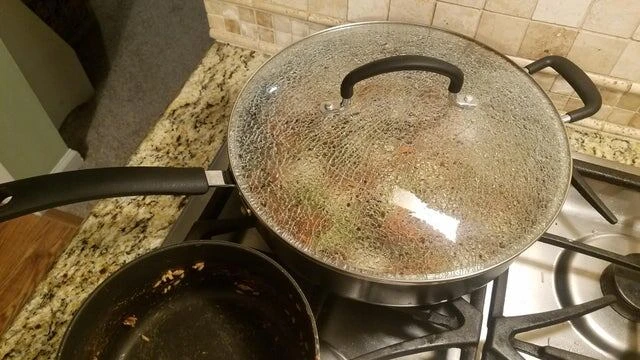 4. Кришка сковорідки потріскалася і незабаром приправить їжу склом