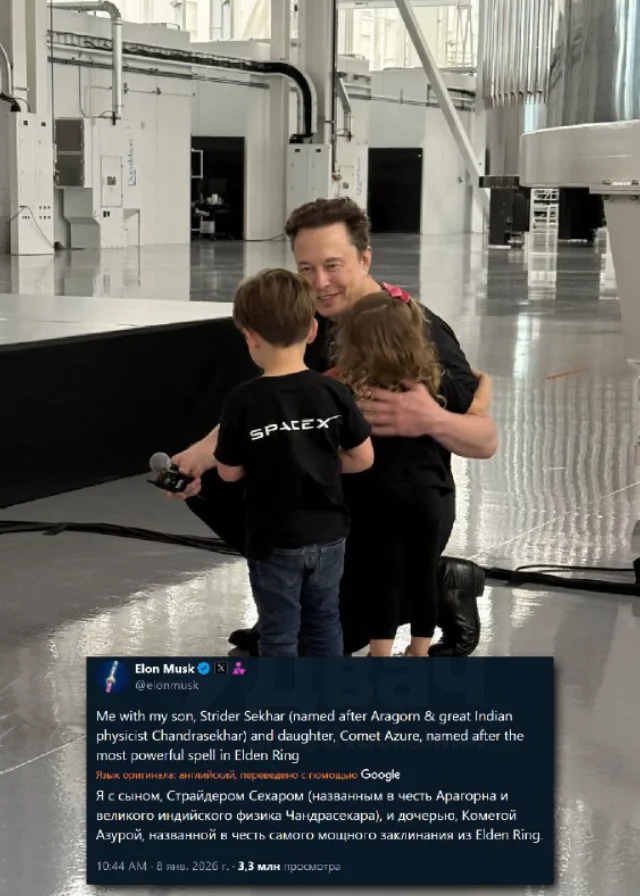 Ілон Маск та ім'я його дочки Категорія: Зірки, Діти, PEGI 0+ Сьогодні, 16:03 Ілон Маск дав незвичайне ім'я своєї дочки – Комета Азура. Саме так називається найсильніший заклинання з гри Elden Ring. Раніше підприємець неодноразово показував любов до цієї гри, але чи не перебір це тепер? 0 Ілон Маск, Елден рінг, elden ring
