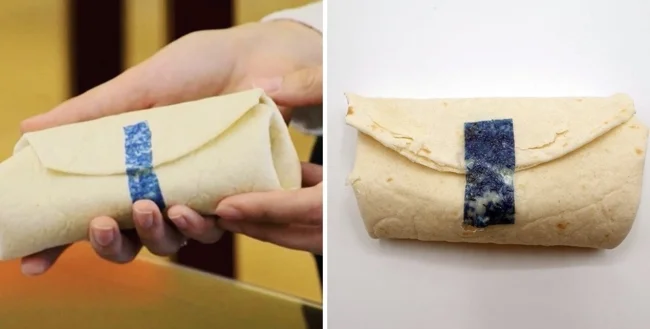 Напевно, вам неодноразово доводилося бувати в ситуації, коли дуже хотілося їсти, але апетит псувався, коли бургер буквально розвалювався в руках. Винахідники потурбувалися про це і вигадали клейку їстівну стрічку Tastee Tape. Вона легко справляється з описаною проблемою, дозволяючи скріпити горезвісний бургер і з'їсти його акуратно, із задоволенням. Стрічка виготовлена з харчового волокна та органічного клею.