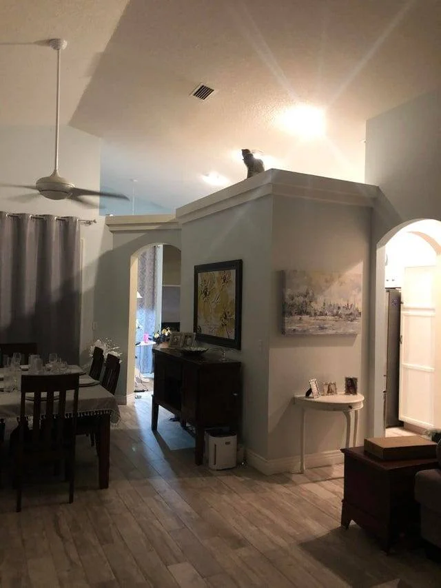 Вхідні двері були прочинені, тому я шукала кішку скрізь. Я 3 години обшукувала будинок та сусідні ділянки. Я кликала її, панікувала і плакала, поки нарешті не подивилася нагору. Весь цей час моя кішка стежила за мною.