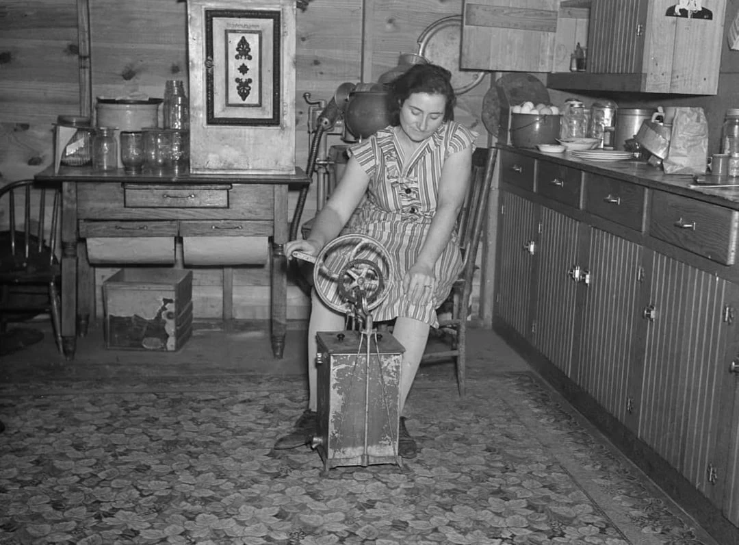 14. Дружина фермера збиває олію в окрузі Еммет, Айова, 1936 рік