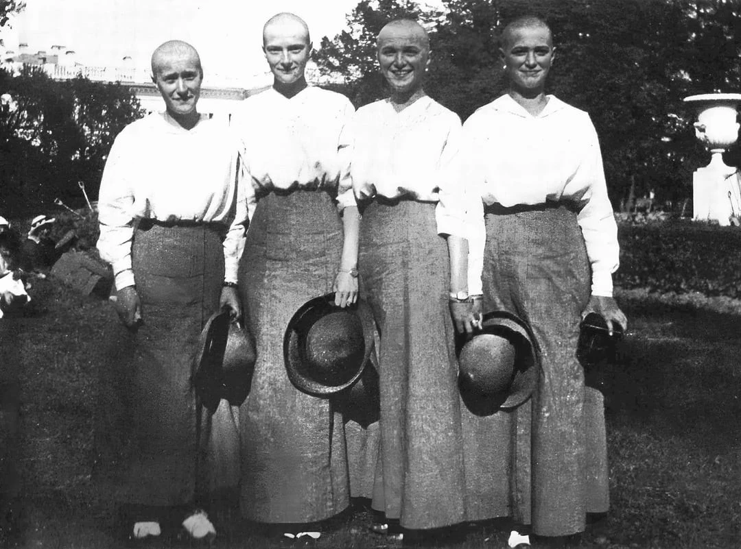 Волосся дівчат зголено через хворобу. Це один із найвідоміших і найпронизливіших знімків чотирьох великих княжон, дочок останнього імператора.