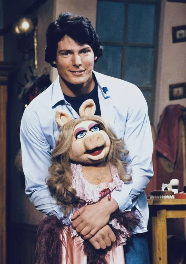 13. Крістофер Рів, він же Супермен, з міс Піггі на зйомках "Маппет-шоу" (1979)