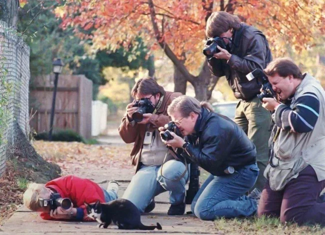 18. Папараці, що оточують Сокса, кота президента Білла Клінтона, 1992 року