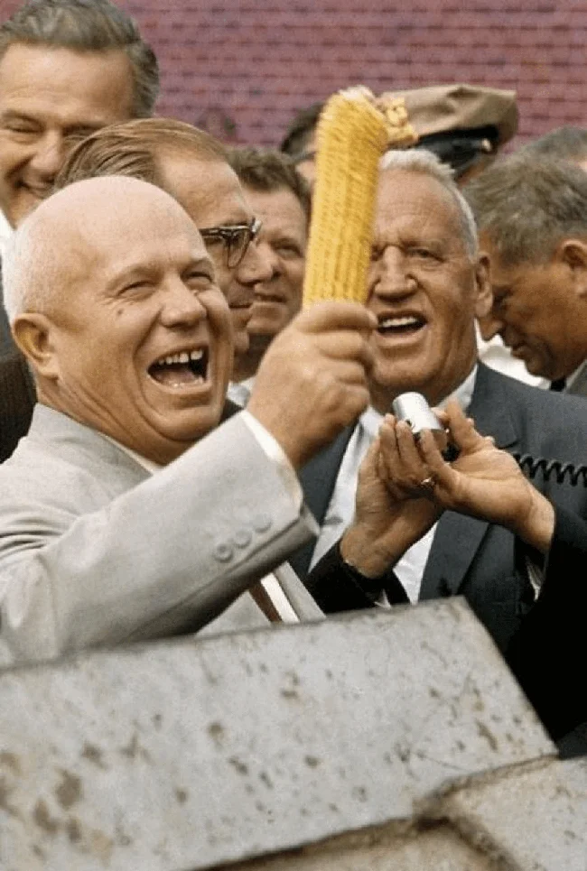 4. Микита Сергійович Хрущов під час свого візиту до США 1959 року тримає кукурудзяний качан