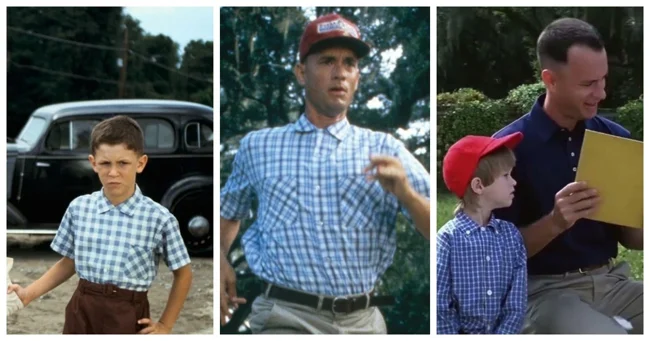 У міру дорослішання героя у фільмі змінюється все, окрім однієї речі. У першій сцені кожного нового життєвого етапу Форрест незмінно з'являється у синій сорочці у клітку. Більше того, у фінальній сцені схожу сорочку носить його син Форрест-молодший.