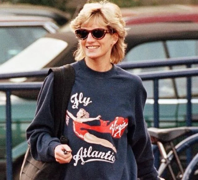 Історія цього светра почалася у 1980-х, коли Річард Бренсон подарував Діані светр Virgin Atlantic. Йому одразу сподобався, і вона стала носити його щоразу на тренуваннях – темно-синій із логотипом "Fly Atlantic". Цей світшот став її фірмовим елементом гардеробу. Але причина його появи у її спортивному образі була не лише стильною – Діана використовувала його як відповідь на настирливих папараці, яким було важко робити нові фото, адже вона виглядала однаково щодня.