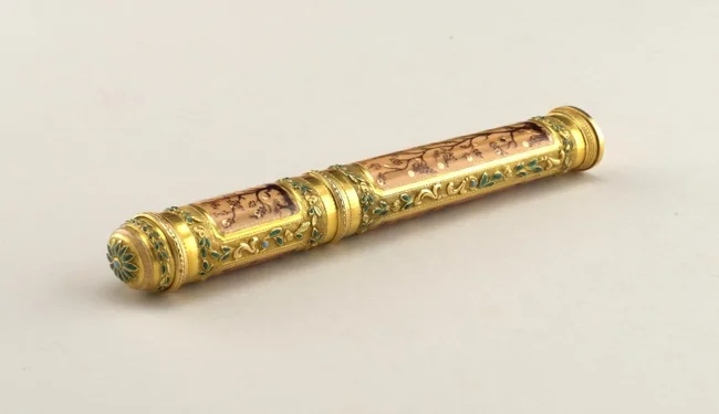 4. Скринька-етюї із золота та емалі, Франція, бл. 1783-1789 рр. Етюї (несесери) створювалися для зберігання невеликих предметів, таких як швейне, туалетне приладдя або косметика.