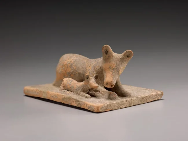 20. Теракотова фігурка собаки зі цуценям, бл. початку V століття до н.е., Беотія ![]()