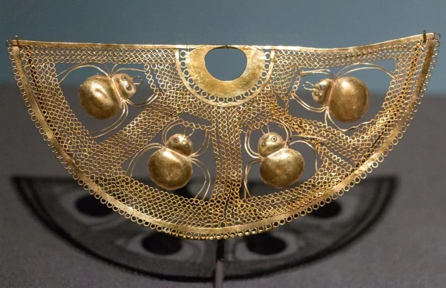 18. Золота наносна прикраса з чотирма павуками. Перу, культура Сечі, 525-550 р.р. н.е.
