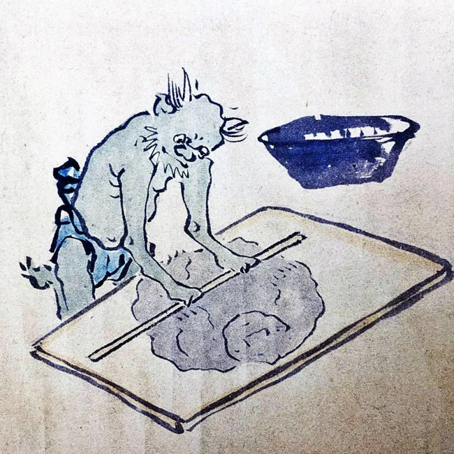 2. Демон розкочує людину на локшину. Японія (період Едо). Автор Нітесай (також відомий як Мацуя Хейдзабуро), працював наприкінці XVIII століття