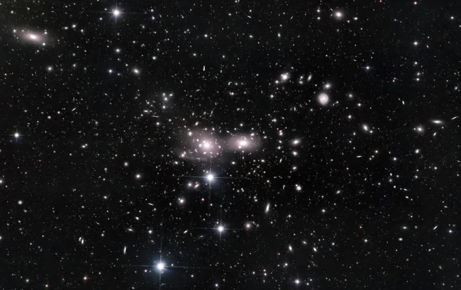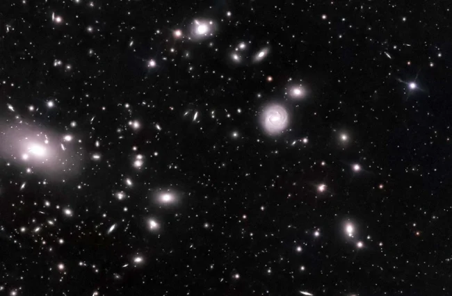 Перед вами грандіозне скупчення галактик у сузір'ї Волосся Вероніки (скупчення Коми) — один із найщільніших і найпотужніших галактичних "мегаполісів" у найближчому Всесвіті. Майже кожен об'єкт на зображенні нижче - окрема галактика.