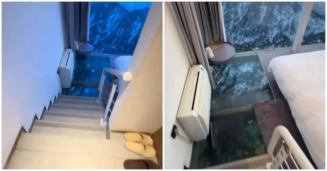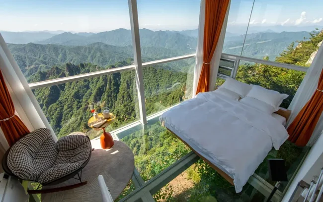 У Китаї можна знайти готель із прозорою підлогою. З його номерів відкривається вражаючий краєвид на гори.