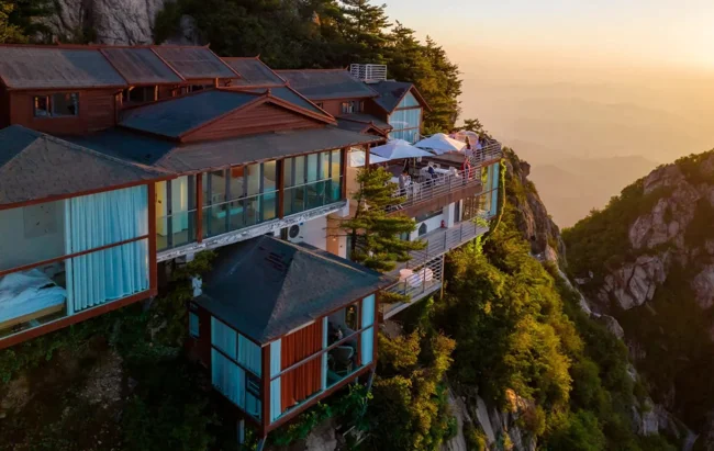 У Китаї працює гірський готель із прозорими підлогами — Laojunshan Cliff «висить» на стрімкій скелі на висоті 1600 м-коду.