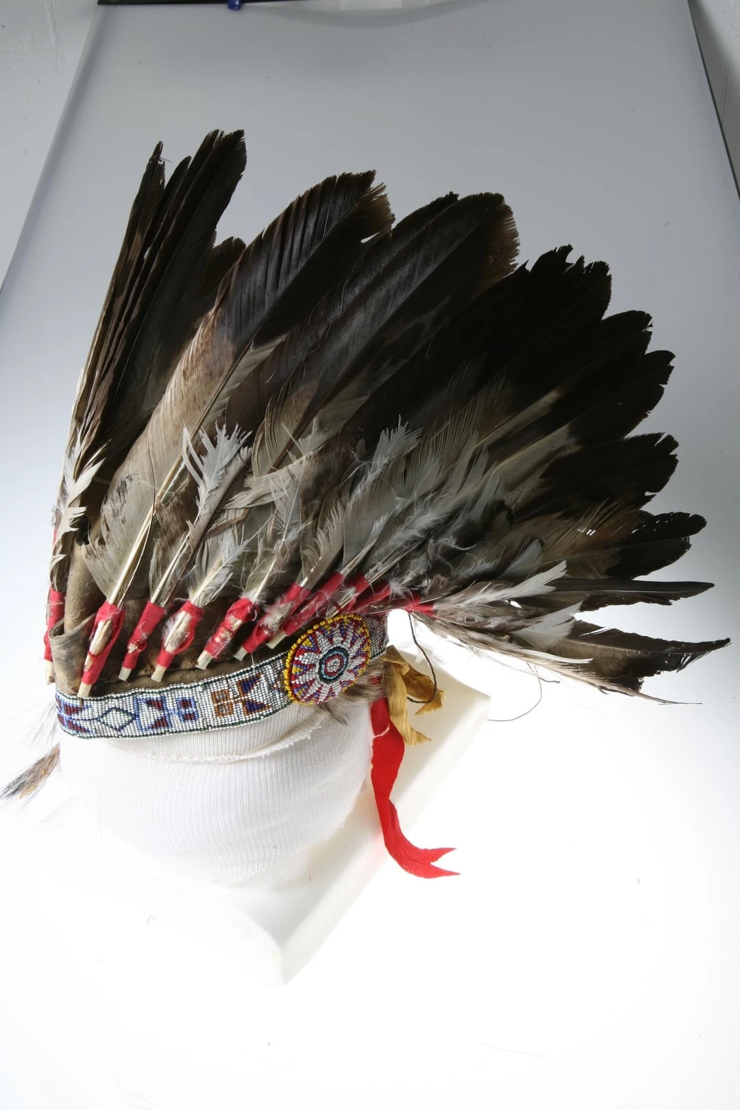 16. Головний убір індіанців племені сіу з пір'я з прикрашеною бісером стрічкою, 1850-1900 рр.