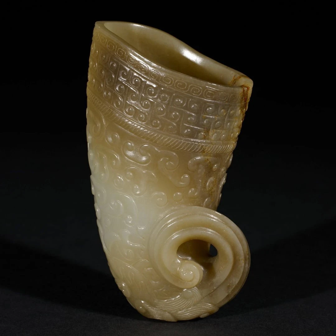 9. Нефритовий ріг для пиття з мотивом макари – водної "химери". Китай, династія Тан, 750 рік нашої ери