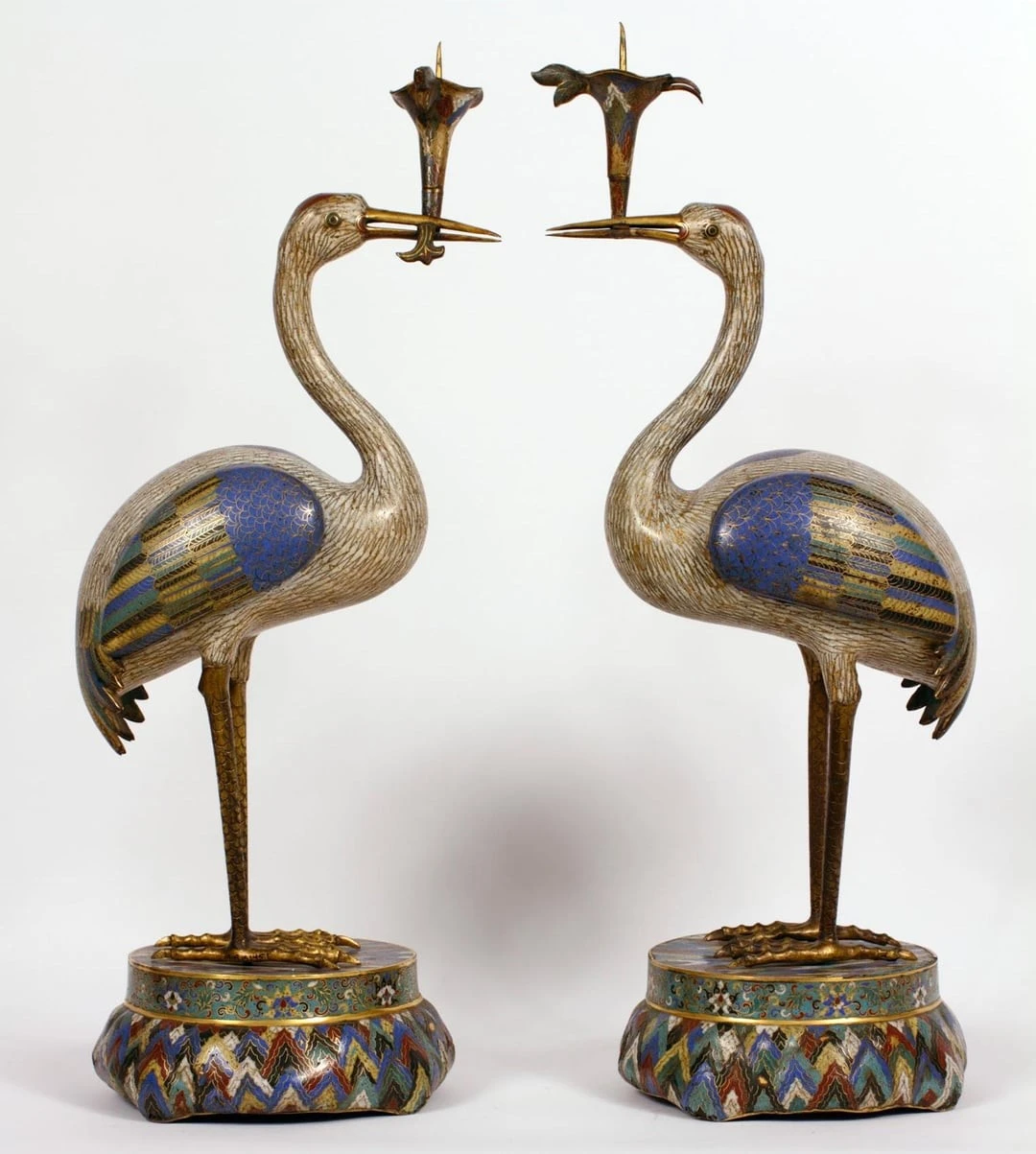 13. Свічники у вигляді журавликів із перегородчастої емалі. Китай, XVIII століття