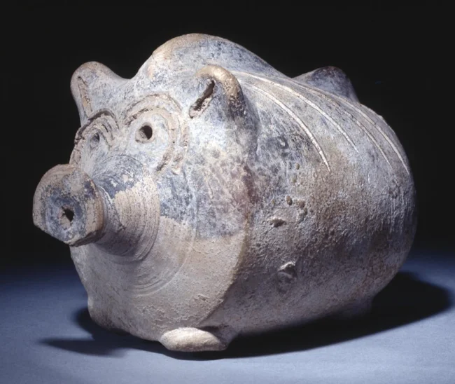 18.Теракотова брязкальце у вигляді порося або кабанчика. З Кіпру, 300-50 р.р. до н.е., нині зберігається у Британському музеї