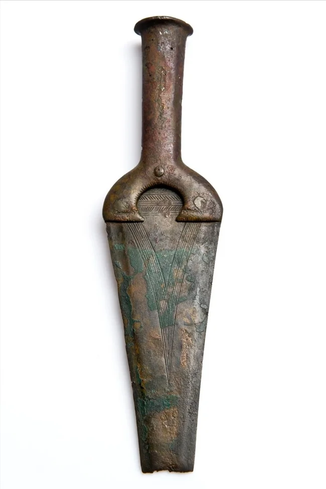 6. Фрагмент бронзового кинджалу, знайдений на початку 1900-х років у Добрчі, Польща. Між 2400 та 1500 роками до н. е.