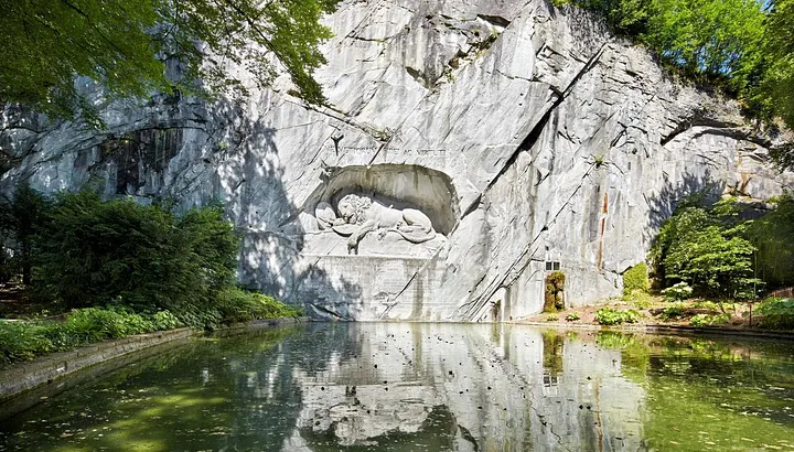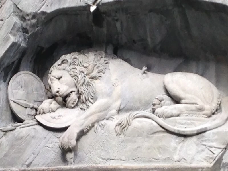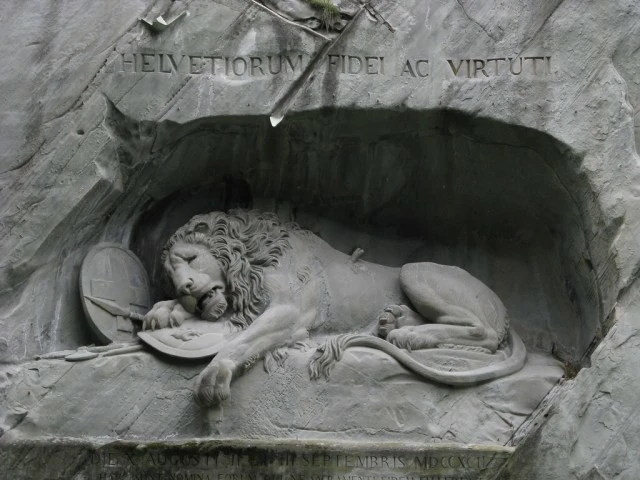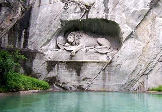 «Вмираючий лев» - одна з головних перлин Швейцарії. У колишньому піщаниковому кар'єрі на околиці міста Люцерна зі скелі висічено вмираючого царя звірів. Добре видно рану від списа, поруч щит із геральдикою французької монархії. Цей монумент, створений у 1820 році, досягає 10 метрів у довжину та 6 у висоту.