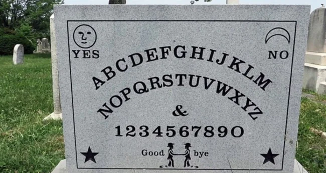 Надгробок Елайджі Бонда у вигляді спіритичної дошки.