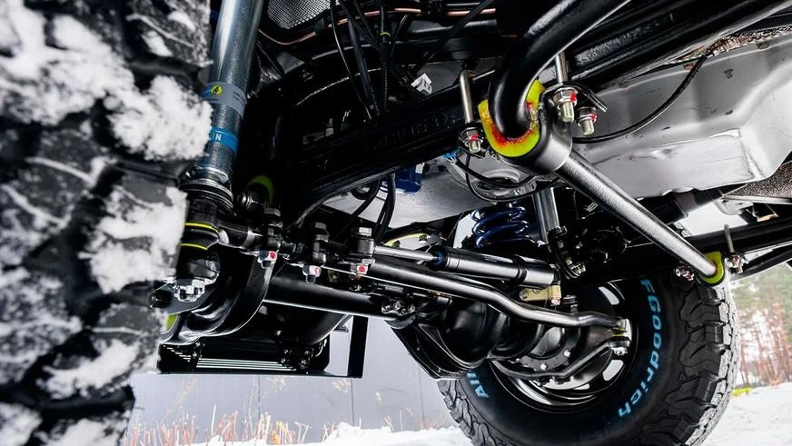 Одним тільки двигуном доробка Camo Wolf не обмежилася. Проект починається з повної реставрації шасі оригінальної машини, яке доповнюється ліфтованою підвіскою Bilstein та великими колесами. Позашляховик комплектують силовими бамперами, розширювачами арок, встановлюють сучасну аудіосистему, кондиціонер, нові прилади та підігрів крісел. Інтер'єр оформляють комбінацією натуральної шкіри та вставок із дуба.