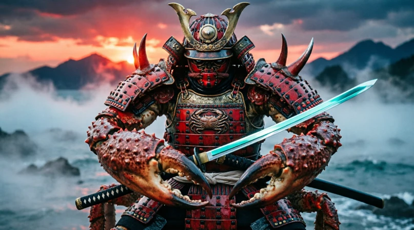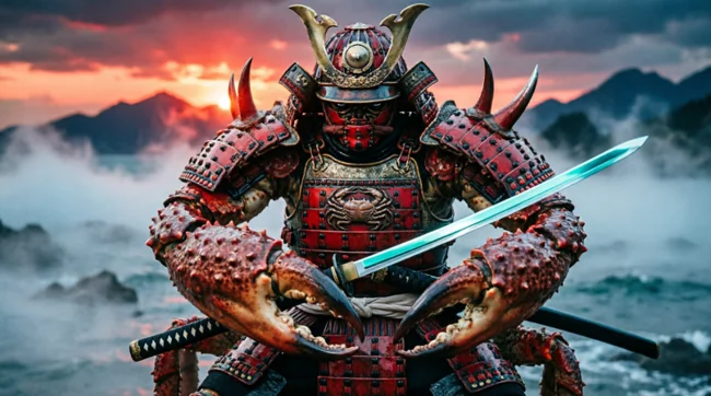 Битва при Дан-но-Ура породила безліч легенд, і найдивніша з них розповідає про крабі. Цей краб має незвичайний панцир, візерунок на якому смутно нагадує розгніване самурайське обличчя.