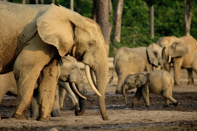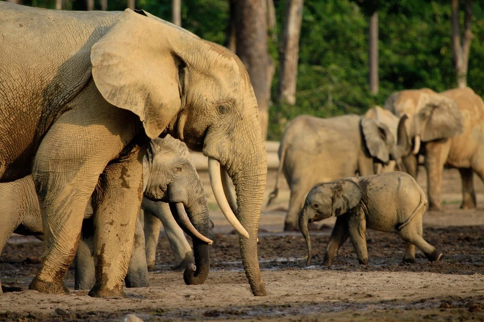 Лісовий слон. Кількість особин, що залишилися: близько 600 тисяч.